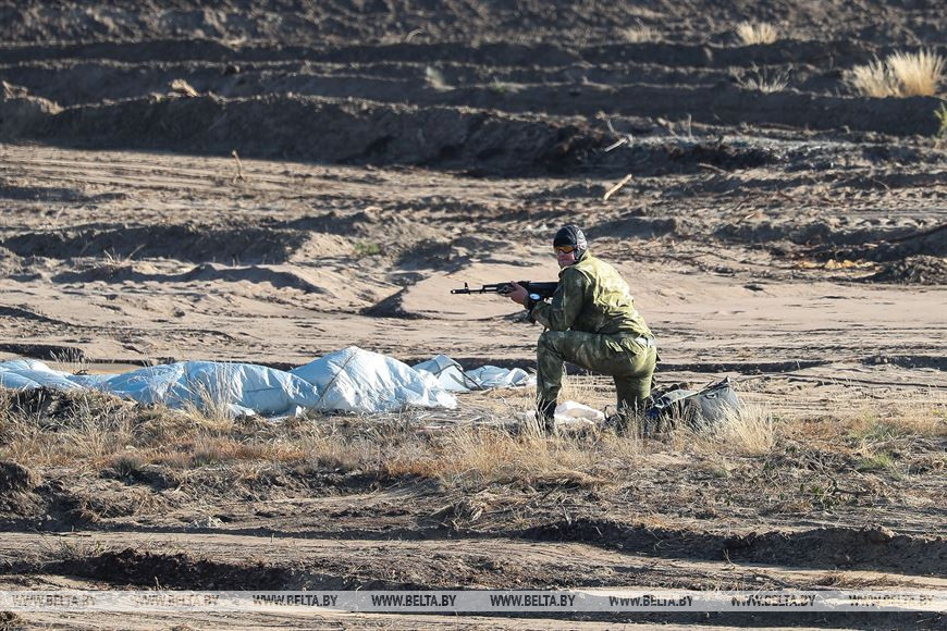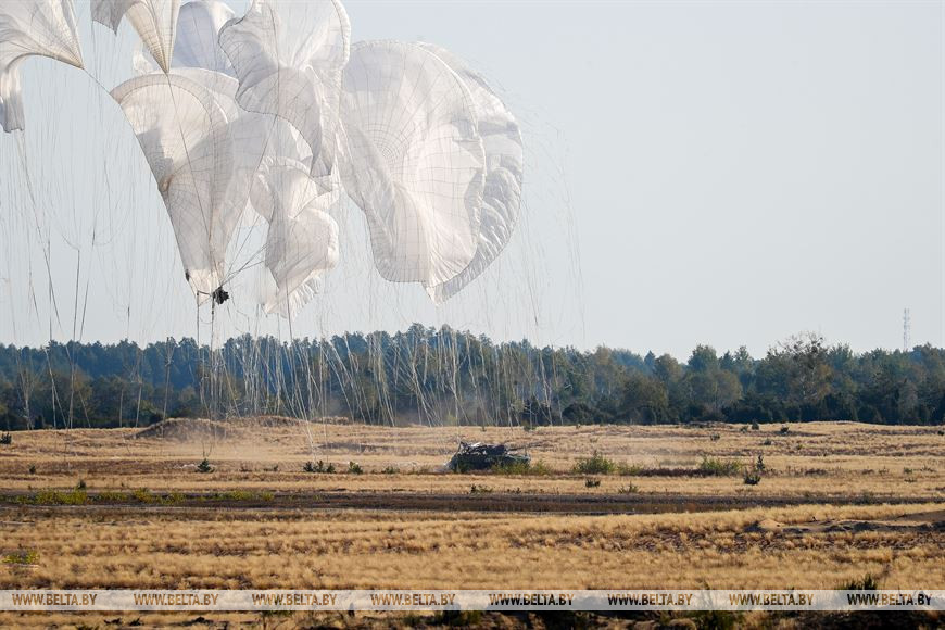 Сегодня предусматривается работа сводной белорусско-российской тактической группы по освобождению гидротехнического узла, захваченного условным противником. Тактические действия сводной группы включают десантирование парашютным и посадочным способом, преодоление участка реки на боевой технике.