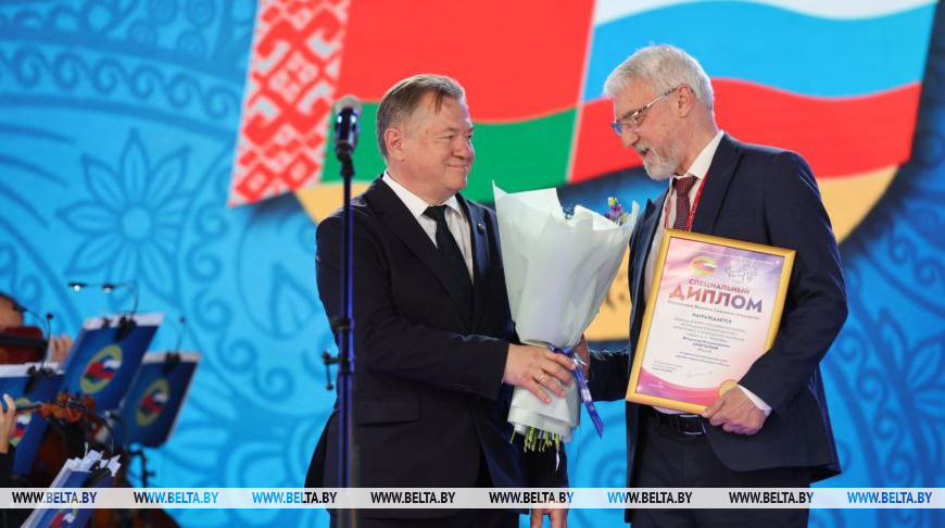 За укрепление дружбы и добрососедства между народами Беларуси и России награда присвоена директору Российского научно-исследовательского института культурного и природного наследия имени Д.Лихачева Владимиру Аристархову.За творческий вклад в реализацию идей белорусско-российского культурного единства, активную творческую деятельность награду получила белорусская артистка-вокалистка, обладательница медали Франциска Скорины Анна Благова. "Это волнительно и почетно - сегодня, в День Союзного государства, стоять на сцене легендарного фестиваля, который уже много лет соединяет сердца и души людей двух стран - Беларуси и России, народов, у которых общая история, традиции и ценности. Держа в руках эту награду, я понимаю, что все то, что мы делаем, находит отклик в сердцах братского народа России", - отметила артистка, поблагодарив за высокую оценку ее творчества и поддержку.