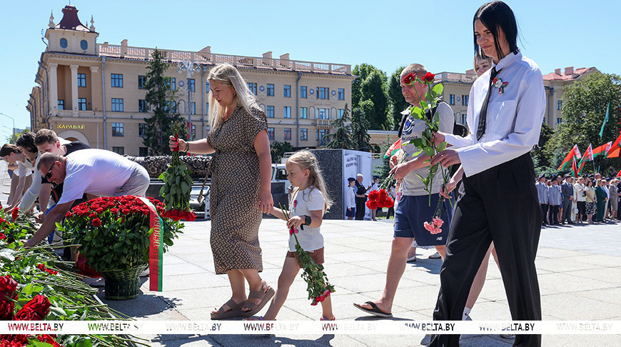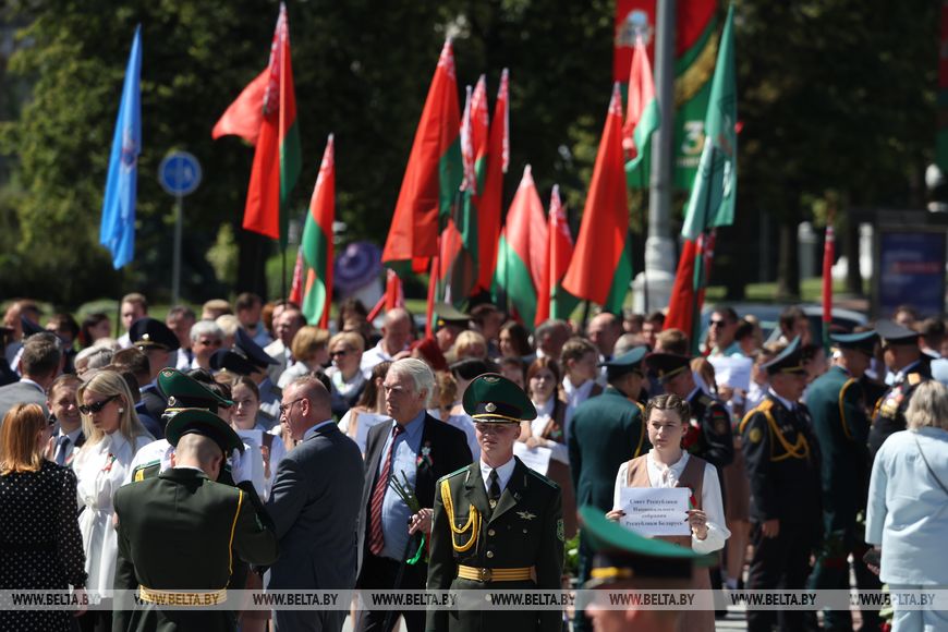 3 июля, Минск /Корр. БЕЛТА/. 3 июля, в День Независимости Республики Беларусь, проходят праздничные мероприятия, в том числе торжественные церемонии возложения цветов и венков. Утром в столице жители и гости города возлагают цветы у монумента Победы в Минске.-0-
