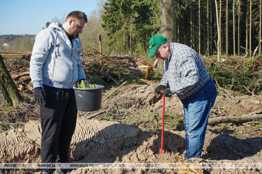 Сегодня на месте вырубок спелой древесины в лесфонде государственного лесохозяйственного учреждения "Красносельское" в Минском районе часть трудового коллектива Управления делами Президента во главе с Юрием Назаровым высаживает ели и березы и посвящает их Году мира и созидания. "Это своеобразное послание будущим поколениям, которым предстоит здесь через многие десятилетия собрать плоды нашего труда. Все работают старательно и с отличным настроением. На субботнике иначе не бывает", - отметил управделами Президента.
