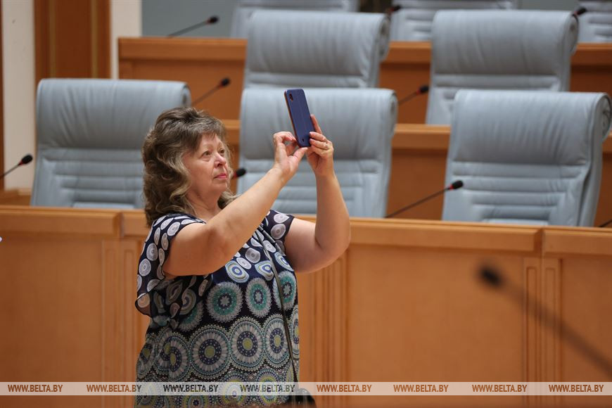 "Мы долго ждали эту встречу. В течение года. Когда к нам приезжала Наталья Кочанова (председатель Совета Республики. - Прим. БЕЛТА), я приходила к ней на прием и просила помочь побывать в жемчужине нашей Беларуси - Дворце Независимости. И Наталья Ивановна сдержала свое слово. Но так как зима, ковид, поэтому не смогли быстро попасть сюда. И вот сейчас мы прибыли сюда - в жемчужину Беларуси. Мы в восторге!" - делится впечатлениями Анна Хацкевич, председатель городской Новолукомльской организации ветеранов и заместитель председателя Чашникской районной ветеранской организации.