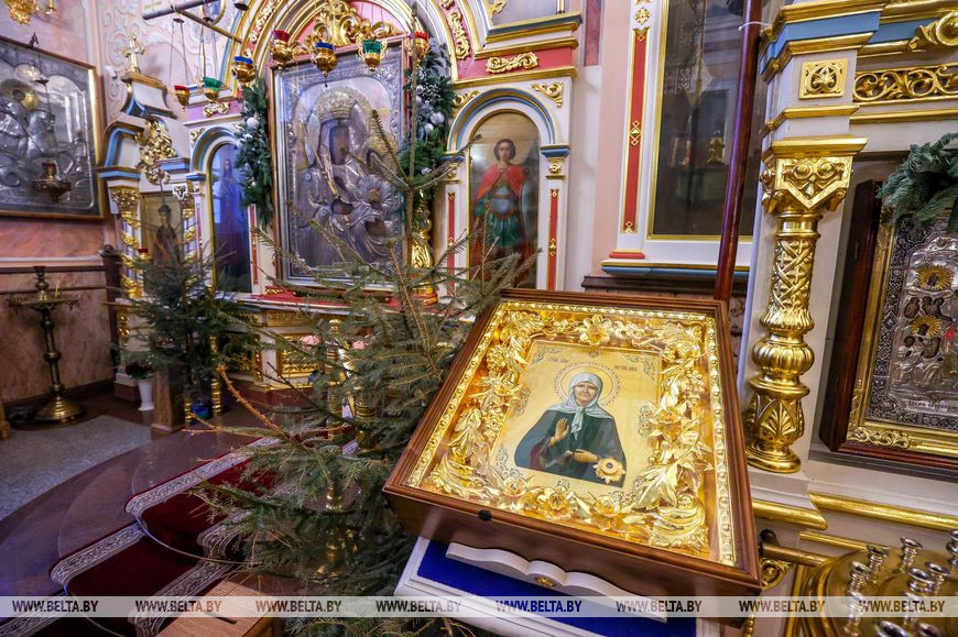 Очень почитаем верующими образ блаженной Матроны Московской с частичкой святых мощей. Образ изготовлен благодаря Фонду святых равноапостольных Константина и Елены в Москве.