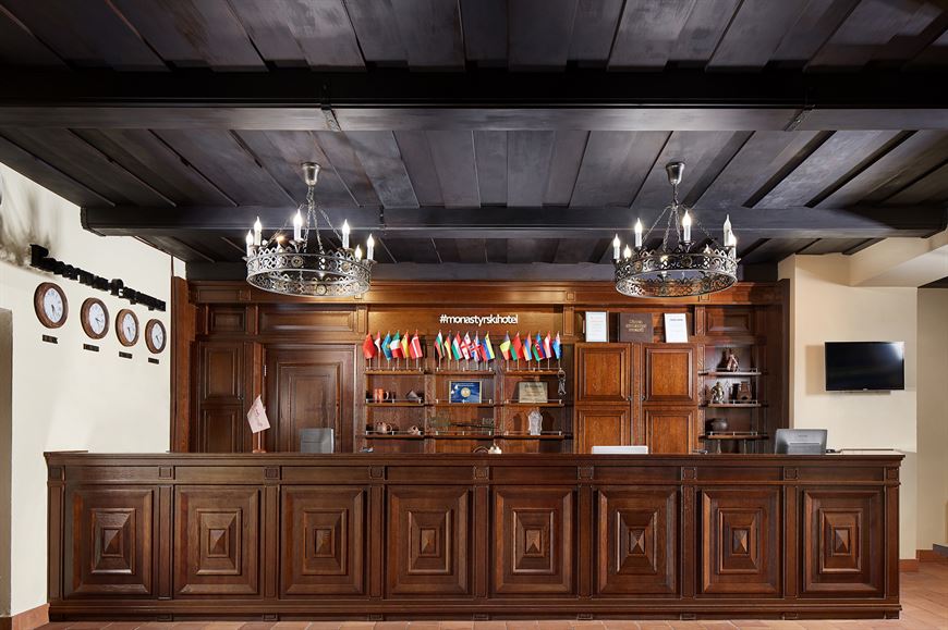 - Сейчас гостиничный комплекс "Отель Монастырский" входит в состав КУП "Бизнес-центр "Столица" (сеть отелей "Виктория"). В процессе реставрации удалось сохранить все архитектурные элементы здания XIX века, часть из которых стала изюминкой интерьера. Например, найденные фрагменты фресковой живописи украшают стены в коридорах, на полу - точная копия трапециевидной плитки, что была здесь ранее, кованые люстры - копия обнаруженных при реконструкции, - рассказывает директор КУП "Бизнес-центр "Столица" Ирина Дмуховская.