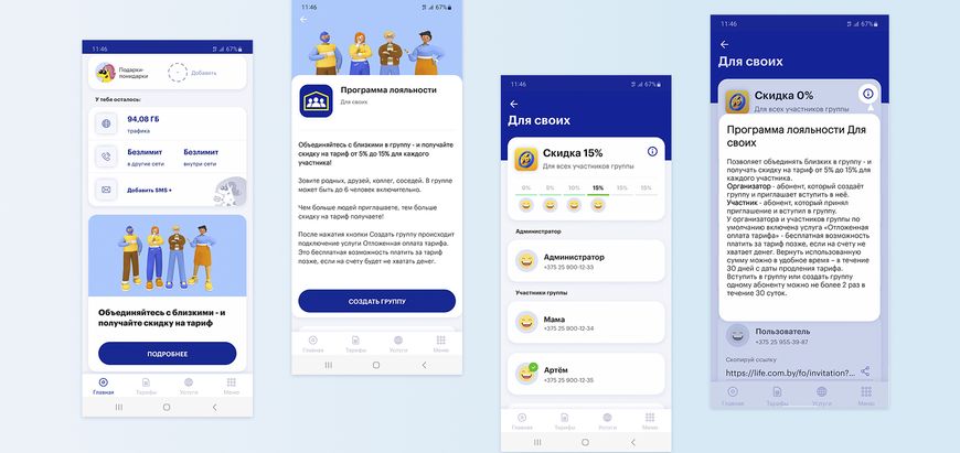 Мобильный оператор life:) запустил уникальную для телеком-рынка Беларуси программу лояльности "Для своих". Теперь абоненты оператора могут объединяться в группы и ежемесячно получать скидки на тарифы от 5% до 15%.