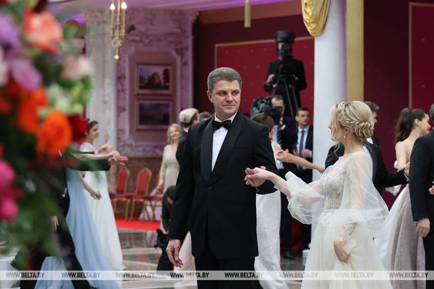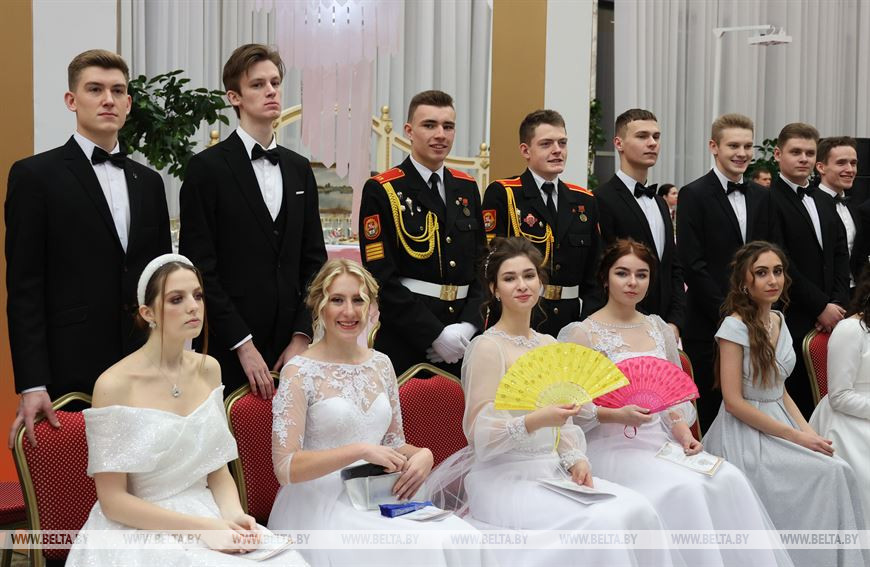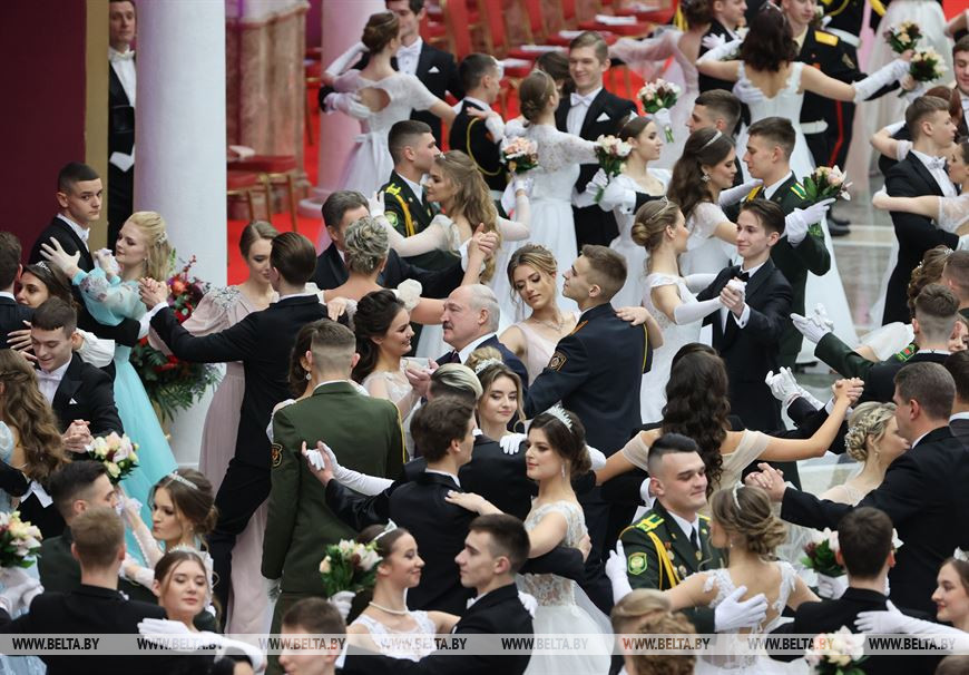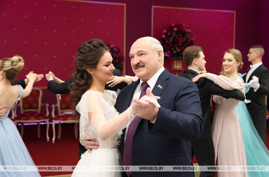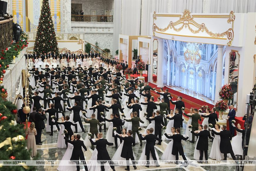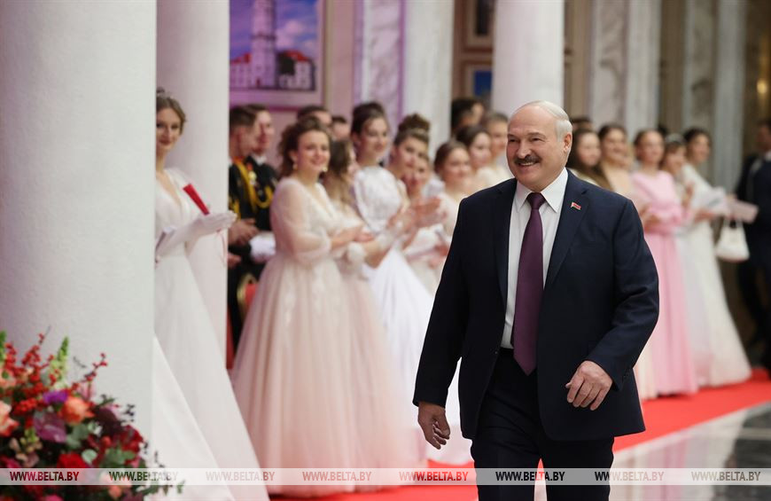 "Сегодня, как и всегда под занавес уходящего года, всегда официальный и строгий Дворец Независимости сказочно преображается. Он похож на вас, а вы - на него. Его атмосферу создаете вы, уважаемые гости праздничного бала. Яркие, статные, уверенные в себе молодые люди - вы главное украшение этого бала", - сказал белорусский лидер.