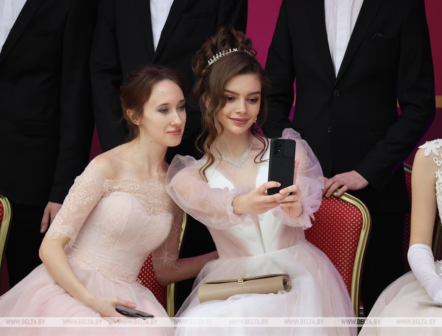 "Помните: в ваших руках судьба нашей родной Беларуси. Вашей прежде всего Беларуси", - напутствовал глава государства. Он пожелал всем участникам бала яркой, интересной и благополучной жизни: "Я хочу вам пожелать как можно дольше быть такими красивыми: девушкам - покорять мужские сердца, а мужикам - (вот как сегодня вы стоите) быть достойными этой красотищи в белых платьях".