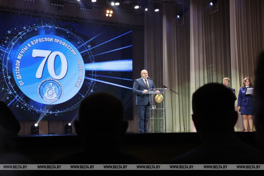 Анатолий Петрович отметил, что за 70 лет Детская железная дорога превратилась в то, о чем он мечтал. Стоявший у истоков этого движения ветеран отметил, что нынешняя молодежь - самая продвинутая и профессиональная, с горящими глазами. Вместе с тем, по его мнению, улучшилось и техническое состояние железной дороги в Беларуси, а новое поколение будет только множить достижения отрасли.Принял участие в поздравлении юных железнодорожников и заместитель главы Администрации Президента Дмитрий Матусевич. Он отметил, что 70 лет - это очень значимый юбилей. "Я помню, как мечтал попасть на эту дорогу маленьким, и уже несколько раз привозил своих детей туда, что вызывало у них добрые, хорошие улыбки", - поделился с присутствующими в зале он.