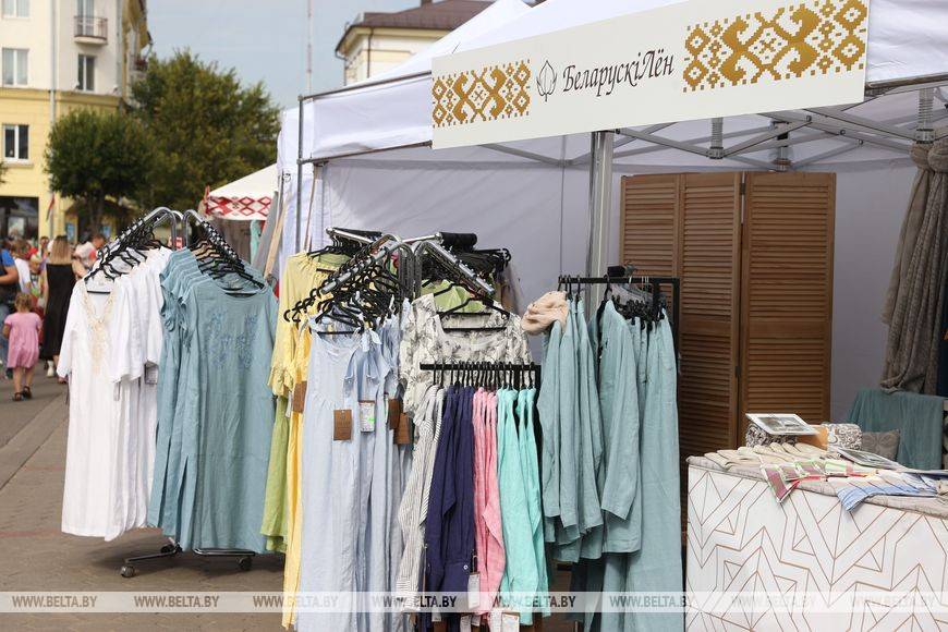 На центральной площади Борисова взгляд то и дело останавливается на майках, бейсболках, сувенирах - это выставка-продажа "Белорусские бренды" представляет продукцию отечественных предприятий. Некоторые из товаров на прилавках разработаны с участием специалистов Национальной академии наук.
