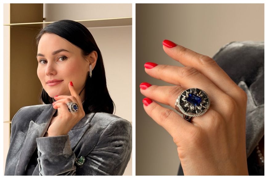 звездчатые сапфиры, цветные бриллианты. Выглядит роскошно и очень современно!