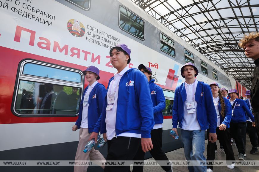 200 ребят, которые отправились в интересное и масштабное путешествие, - потомки победителей - представители народов бывших республик Советского Союза, одержавших в 1945 году общую Победу над нацизмом. Первой точкой их маршрута стал город-герой Брест. Всего участники "Поезда Памяти" посетят 15 городов Беларуси и России. Проект "Поезд Памяти", инициированный главами верхних палат парламентов Беларуси и России, впервые реализован в 2022 году. В 2024 году участники проекта посетили 13 городов, преодолев более 9 тыс. км маршрута.-0-