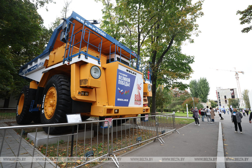 Познакомиться можно и с сельскохозяйственной техникой: за павильоном стоит карьерный самосвал БЕЛАЗ-7558 и комбайн Гомсельмаш.
