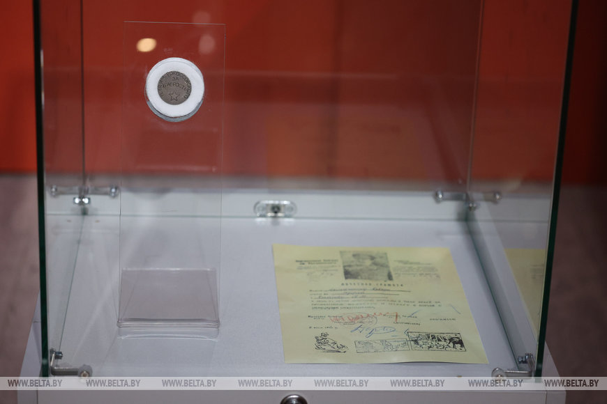 Кстати, в павильоне нашел свое отражение проект Белорусского государственного музея истории Великой Отечественной войны "Раритеты музея". Здесь представлена самодельная партизанская медаль "За храбрость" партизанской бригады имени К.К. Рокоссовского.