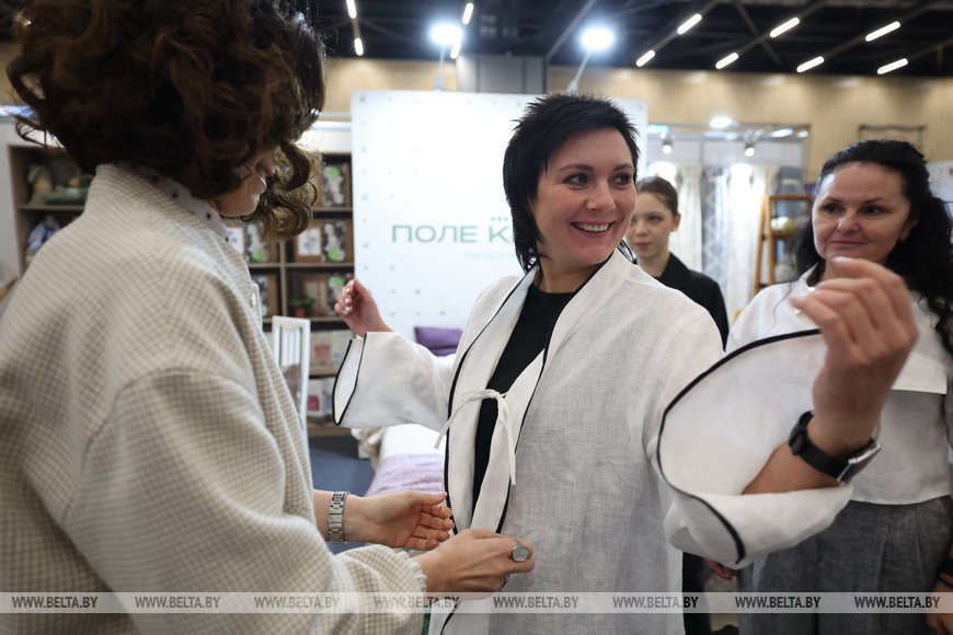 Оршанский льнокомбинат воссоздал домашнюю атмосферу уюта и комфорта. "Наша классика - пледы с эффектом мятости, которые пользуются колоссальным спросом. Показали и одежду из льняных тканей. Надеемся, покупатели оценят ее новизну. Лен - всегда модно, вне сезона и вне времени. Изучаем мировые тенденции. Так, представили изделия в цвете "какао-шоколад". Они сейчас на пике популярности", - рассказала специалист по продажам предприятия Татьяна Гречина.