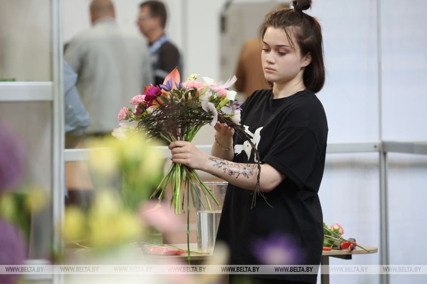 "Сначала из зефира делали объемные цветы, затем несколько видов тортов. На второй день - двухъярусные торты с кремом, а еще подготавливали фигурки. Сегодня - метровую композицию из карамели и два вида конфет. Как жюри смотрим на текстуру, высоту, толщину и, конечно, вкусовые качества и санитарное состояние. У кого-то все выходит с первого раза, у кого-то могут сдавать нервы, но они все равно берут себя в руки и идут до конца", - рассказала кондитер. Тем временем издали манил аромат цветов - там расположились флористы. Сегодня они делали композицию на иголках. Такая техника создает эффект, словно цветы держатся в воздухе без опоры. Бережное обращение с цветком - одно из основных требований экспертов.