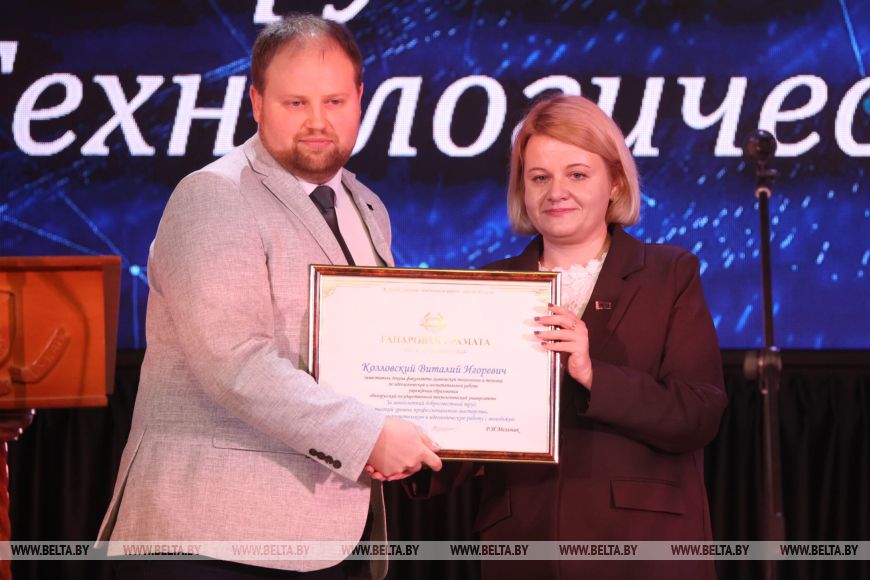 Помимо поздравлений в праздничный день, Министерство образования наградило сотрудников вуза почетными грамотами и нагрудными знаками "Отличник образования".Первый заместитель министра лесного хозяйства Андрей Карась также в своем выступлении поздравил сотрудников БГТУ и вручил им почетные грамоты от ведомства.