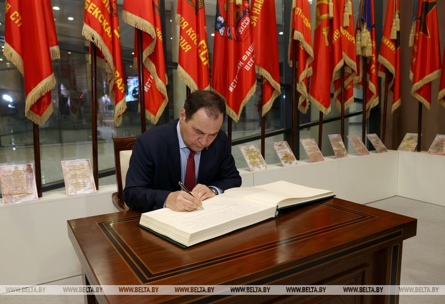 Также Роман Головченко оставил запись в книге почетных гостей в Государственном музее славы. "Выражаю безмерную благодарность руководству Республики Узбекистан, всему братскому узбекскому народу за увековечивание подвига советского народа в годы Великой Отечественной войны. Мемориальный комплекс "Парк Победы" призван сохранить память о мужестве и доблести тех, кто героически сражался на фронтах, самоотверженности и несгибаемой стойкости тружеников тыла. Благодарен создателям мемориала за отдельную экспозицию, посвященную героической обороне на белорусской земле в первые дни войны. Желаю дружественному узбекскому народу мира, добра и благополучия", - говорится в записи.