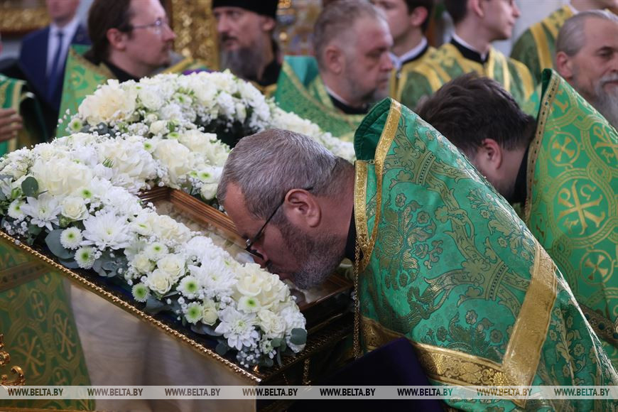 Как сообщили в Московском патриархате, 5 июня в день памяти преподобной Евфросинии, игумении Полоцкой, Патриарх Кирилл совершит божественную литургию в соборе Воздвижения Креста Господня Спасо-Евфросиниевского женского монастыря. На торжественном богослужении будет присутствовать весь белорусский епископат, а также члены Священного синода Русской православной церкви.