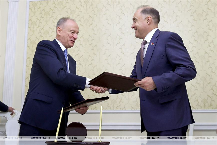 7 июня, Минск /Корр. БЕЛТА/. Вашингтон и его сателлиты не отказались от замыслов осуществить госпереворот в Минске. Об этом заявил секретарь Совета безопасности России Николай Патрушев на встрече в Минске с государственным секретарем Совета безопасности Беларуси Александром Вольфовичем, передает корреспондент БЕЛТА.