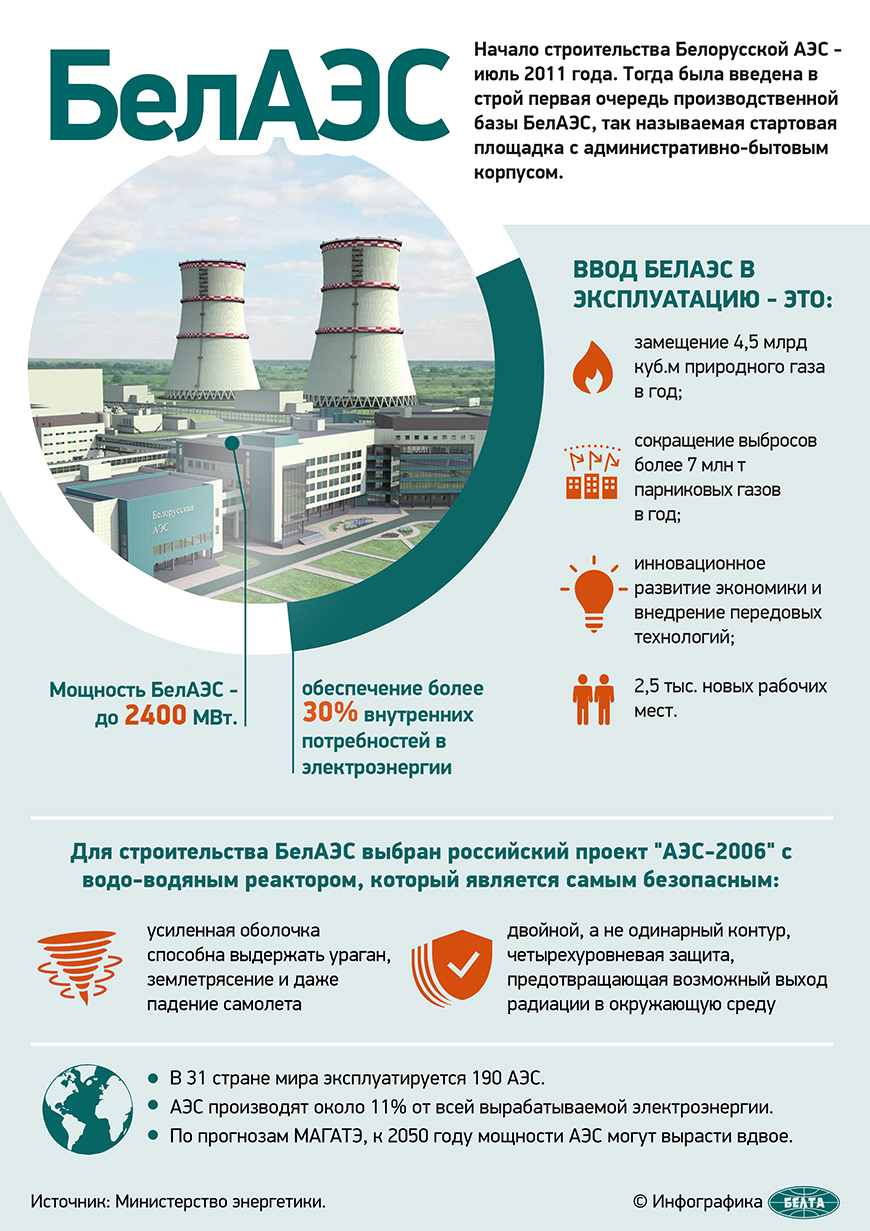 Он подчеркнул, что атомная электростанция строится для нужд Беларуси, электрическая энергия в первую очередь будет потребляться именно здесь. "В то же время белорусская энергосистема готова обеспечить поставку электрической энергии и за пределы страны по конкурентным ценам, если такая потребность возникнет", - сказал министр.