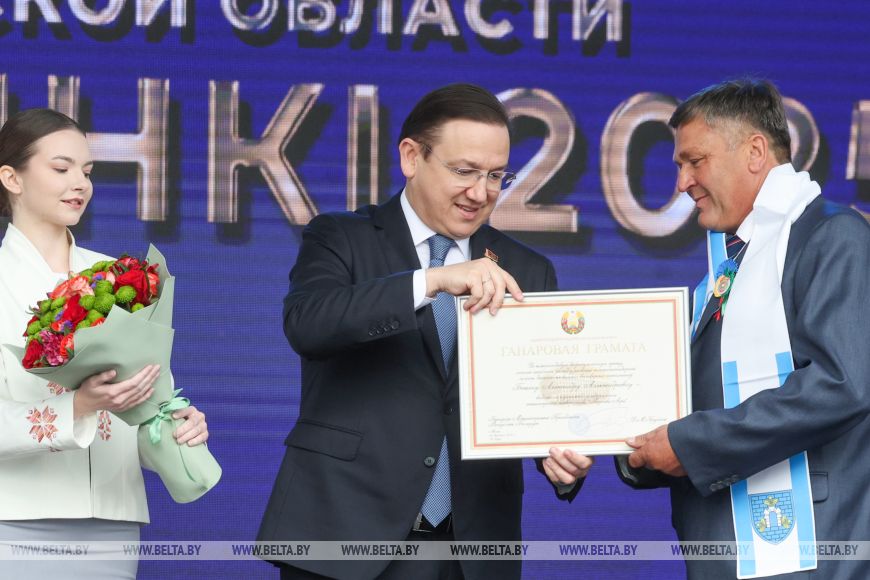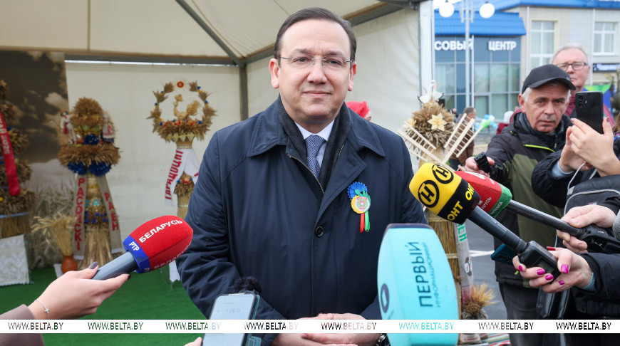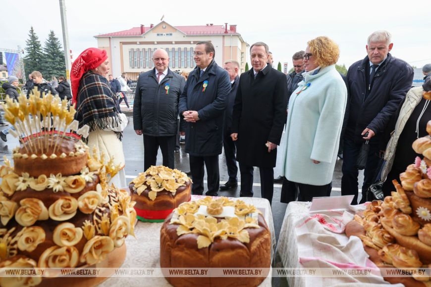 Он подчеркнул, что для тружеников хлебной нивы в Чашниках устроили достойный праздник. "Я проехал по Чашникам. И улицы, и фасады зданий, и пешеходные дорожки преобразились. Новые объекты - это тоже очень хорошо. Ну и потом, мы без праздников жить не можем. И когда у праздника есть такой глубокий смысл, когда есть история, повод собраться - это хорошо, это делает нашу жизнь мирной и показывает всем нашим соседям, что мы ориентированы на мир и созидание, а такие праздники - на то, чтобы быть с урожаем и делиться нашим урожаем с соседями", - отметил Владимир Перцов.- Снопков: Витебская область собрала на 40% больше зерновых, чем в прошлом году