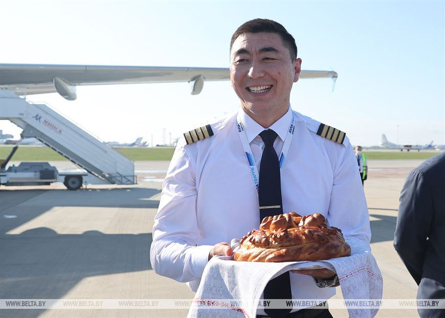"Первый рейс из Бишкека в Минск выполнил борт Airbus A320. Встреча нового авиаперевозчика сопровождалась приветственной водной аркой. А экипаж, руководство авиакомпании и пассажиров приветствовали у трапа самолета согласно национальной традиции - с хлебом и солью", - рассказали в пресс-службе.