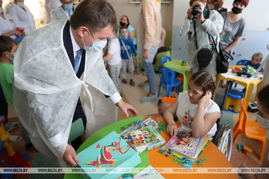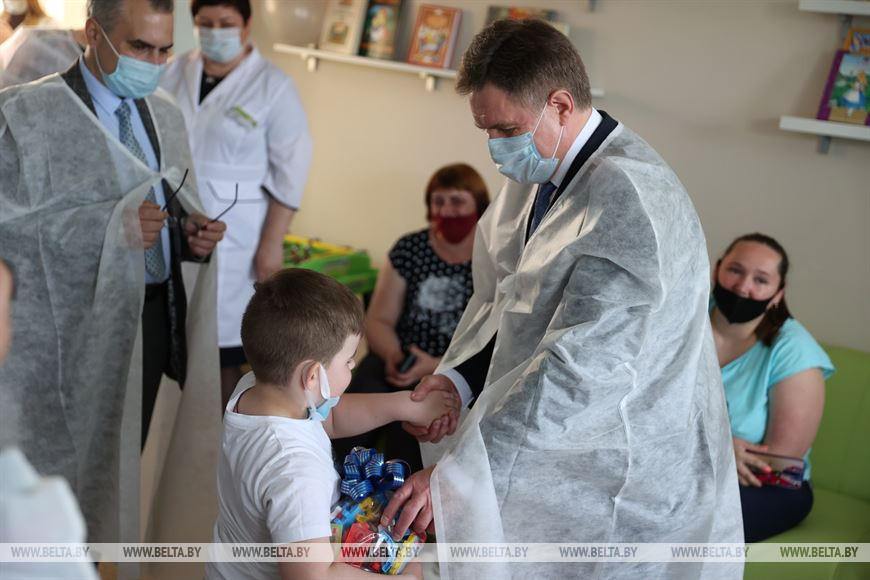 1 июня, Минск /Корр. БЕЛТА/. Заместитель премьер-министра Игорь Петришенко в Международный день защиты детей посетил 2-ю городскую детскую клиническую больницу Минска, где поздравил маленьких пациентов с праздником и пожелал скорейшего выздоровления, передает корреспондент БЕЛТА.