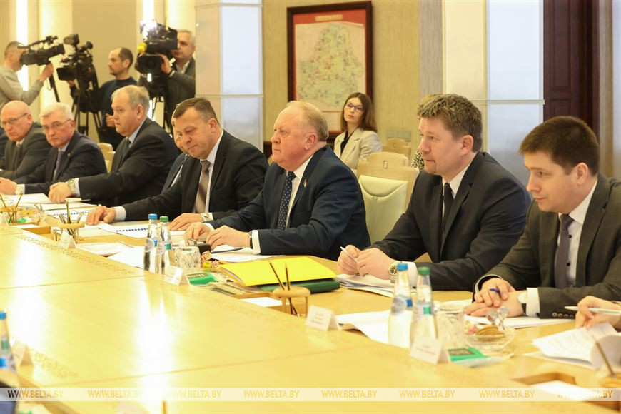 18 апреля, Минск /Корр. БЕЛТА/. Сегодня под руководством председателя Постоянной комиссии Совета Республики по образованию, науке, культуре и социальному развитию Виктора Лисковича прошло совещание по вопросам подготовки совместного белорусско-российского проекта "Поезд Памяти". В мероприятии приняла участие российская делегация во главе с первым заместителем руководителя аппарата Совета Федерации Федерального собрания России Львом Щербаковым, передает корреспондент БЕЛТА.