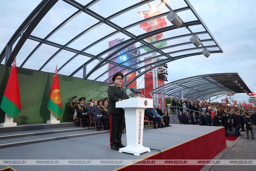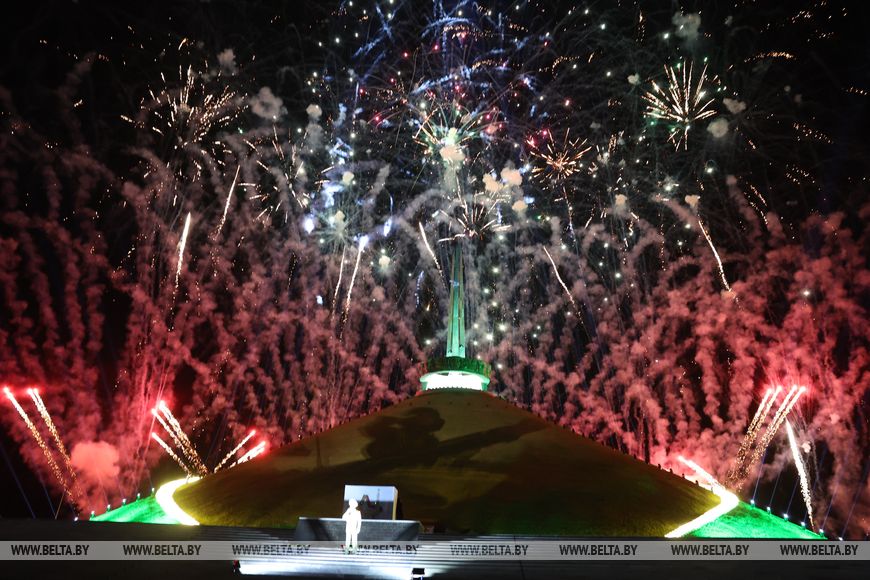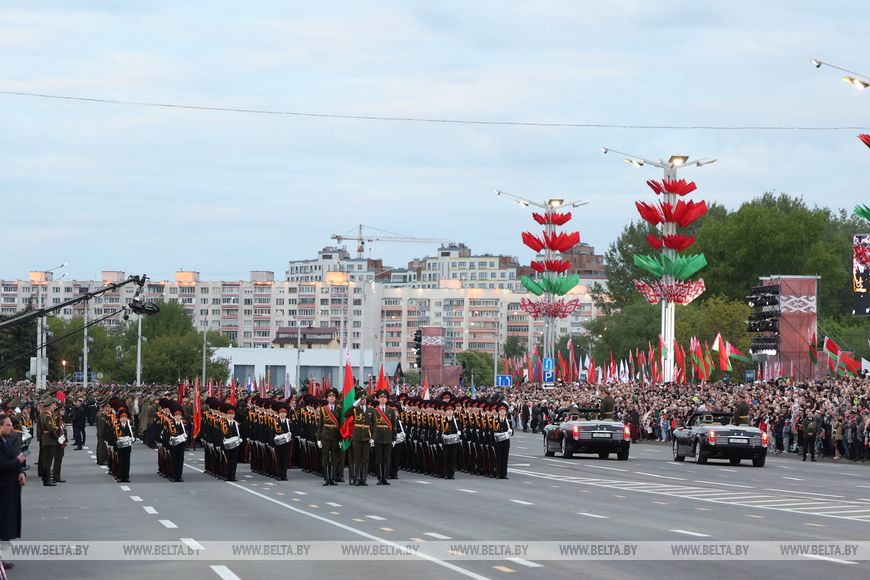 В вечернее время в столице пройдет военный парад с театрализованным эпизодом. Более 4 тыс. человек примут в нем участие в составе 30 пеших расчетов. Также приглашены расчеты из дружественных стран: Российской Федерации, Китайской Народной Республики и ряда государств СНГ. Кульминацией праздника традиционно станет салют. Основная площадка - сквер вблизи гостиницы "Беларусь". Кроме того, салюты состоятся в пяти районах города: в парке им. Павлова, микрорайоне Дрозды, парке им. Уго Чавеса, на площадке "Чижовка-Арены" и у Национальной библиотеки.-0-
