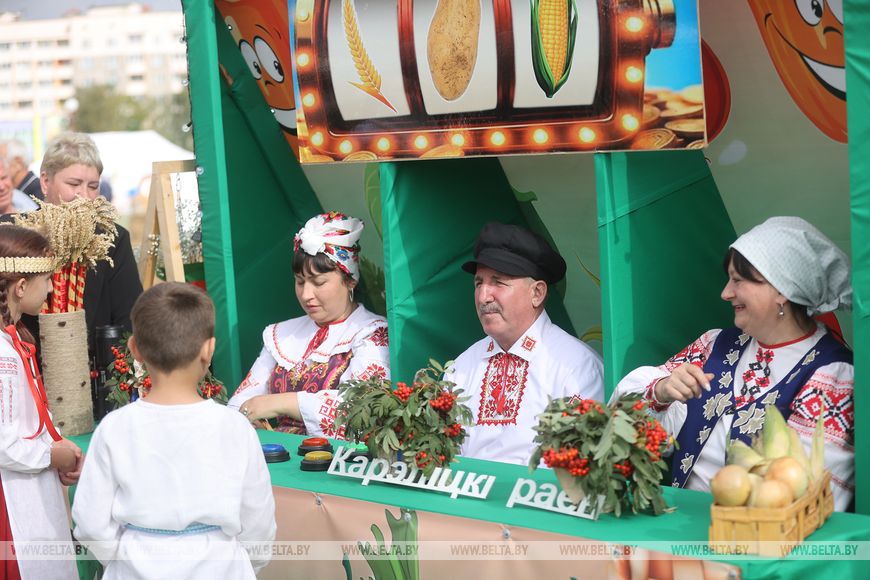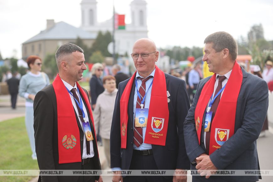 На старте в ожидании открытия подворья всех районов Гродненщины. На них хозяйства представляют самые большие свои достижения, состязаясь друг с другом в креативности. Все это, конечно, под народную музыку и песни, создающие приподнятую атмосферу.