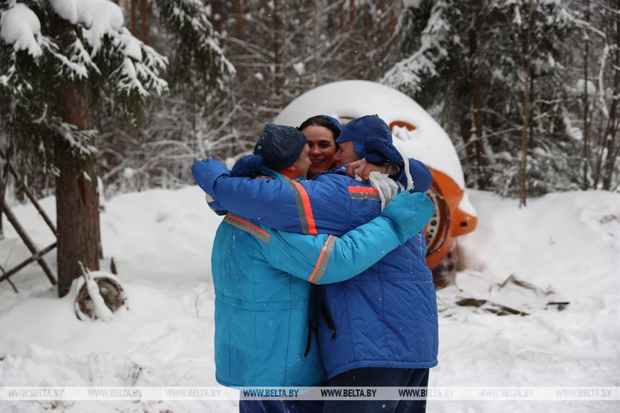 Подготовка наших соотечественниц, которые в скором времени войдут в число покорителей космоса, продолжается. Отрабатываются действия в том числе во внештатных ситуациях. Как правило, их вероятность минимальна, что, впрочем, не отменяет необходимости быть к ним готовыми. Сегодня по сценарию тренировки экипаж оказался как раз в одной из таких ситуаций. После незапланированной посадки космонавты оказались в зимнем лесу. Снег буквально в колено, температура ощутимо ниже нуля. Задача членов экипажа - продержаться до прибытия поисково-спасательных сил. Корреспонденты БЕЛТА вместе с готовящейся к полету в космос белоруской Мариной Василевской и летчиком-космонавтом Олегом Новицким отправились в заснеженный лес в Звездном городке и узнали, как действуют космонавты в таких, без преувеличения, экстремальных условиях.
