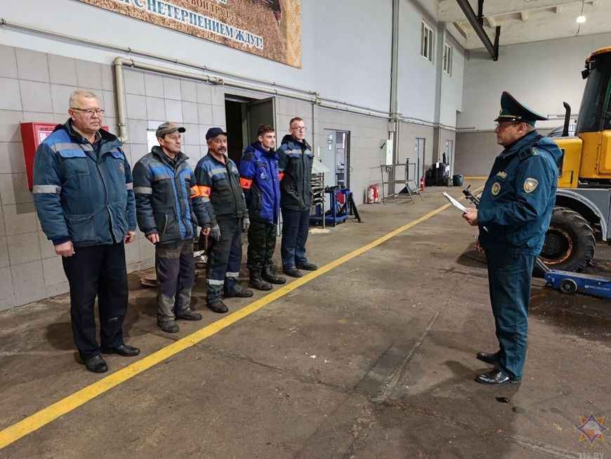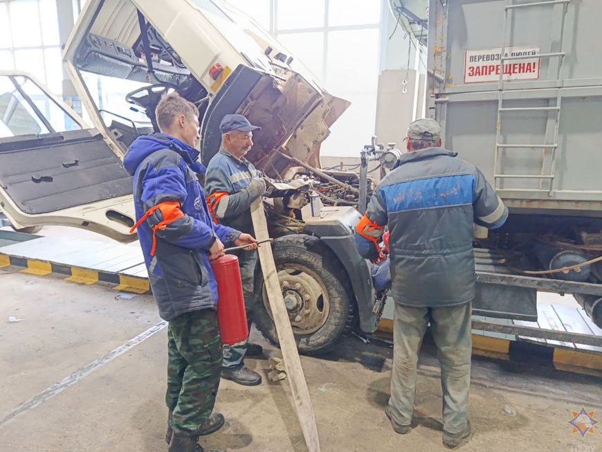 Согласно легенде учений, из-за нарушения правил пожарной безопасности во время ремонта автомобиля в одном из помещений мастерских произошло возгорание. Руководитель объекта оповестил персонал о пожаре, организовал эвакуацию людей и сообщил о случившемся в МЧС.