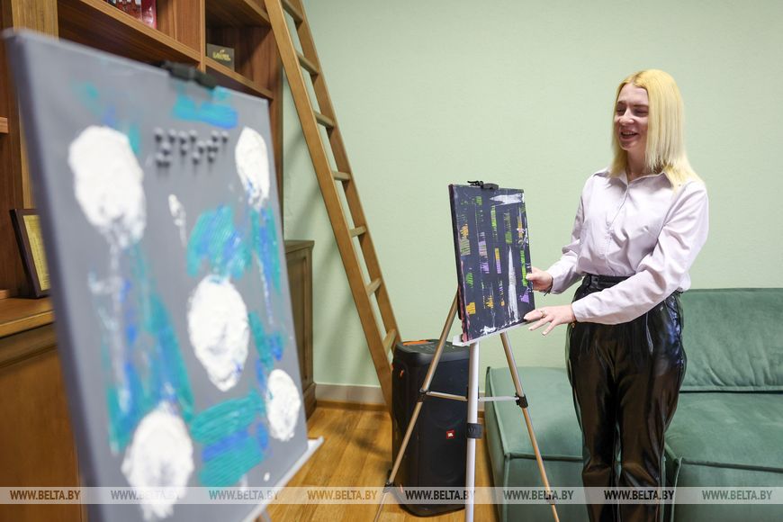 В одной из работ под названием "Полосатая" художница хотела передать, какая жизнь бывает разная. "При этом во всем нужно находить позитив. Не получилось что-то сейчас - выйдет завтра. Поэтому я и говорю, что моя жизнь очень цветная, хотя черный цвет - один из моих любимых. Не понимаю ситуаций, в которых люди страдают и ничего не делают, чтобы это изменить. Может, поэтому я и попала в мир живописи", - поделилась автор.В 2022 году Анастасия пришла работать в Государственный колледж цифровых технологий. Он стал местом, где ее заметили, и, как сказала художница, ее жизнь стала более насыщенной и яркой. Сегодня в колледже работает три незрячих преподавателя, существуют специальные классы для детей с нарушениями слуха и зрения, а еще дополнительные кружки, один из которых и ведет Анастасия. Сегодня в нем занимается около 20 человек.