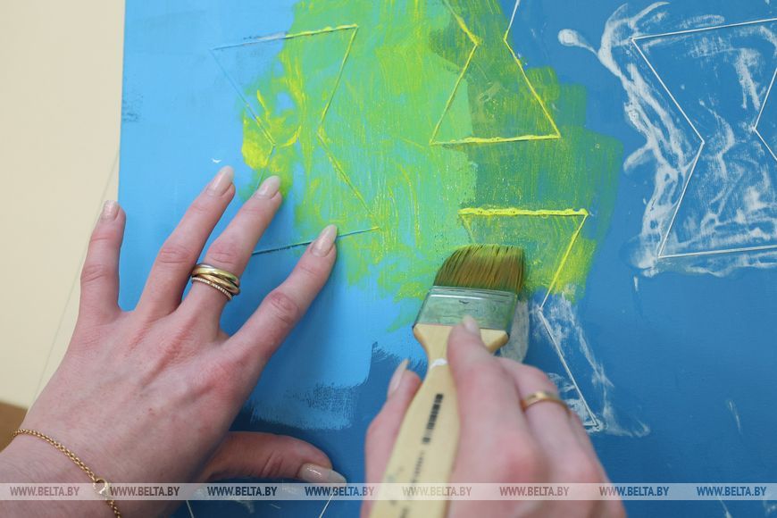 "Тогда я уже не видела, а родители и бабушка с дедушкой тактильно обводили мне рисунки оттуда. Затем, когда подросла, пошла в школу, с помощью грифеля - специального приспособления для незрячих людей, которым мы пишем, - я уже делала рисунки сама и разукрашивала мелками. Они оставляют приятные тактильные следы на бумаге. В более осознанном возрасте перешла на простой карандаш", - поделилась автор. Затем Анастасия попала в проект, где незрячих обучали живописи. Там она познакомилась с кистью и красками. "Я была связующим звеном. Преподавателями и организаторами стала пара из Минска. Было очень много разных техник, которые помогали сделать так, чтобы картины можно было потрогать. Теперь это изюминка моих работ - с ними можно познакомиться не только визуально, но и прикоснуться", - подчеркнула художница.