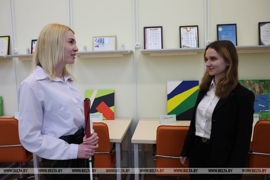 Преподаватель отметила, что сейчас благодаря развитию технологий все настолько адаптировано, проблем вовсе нет. Во время работы она наводит камеру телефона, чтобы определить цвет. Весь колледж адаптирован под людей с особенностями: на кнопках в лифте, в тюбиках красок есть шрифт Брайля.