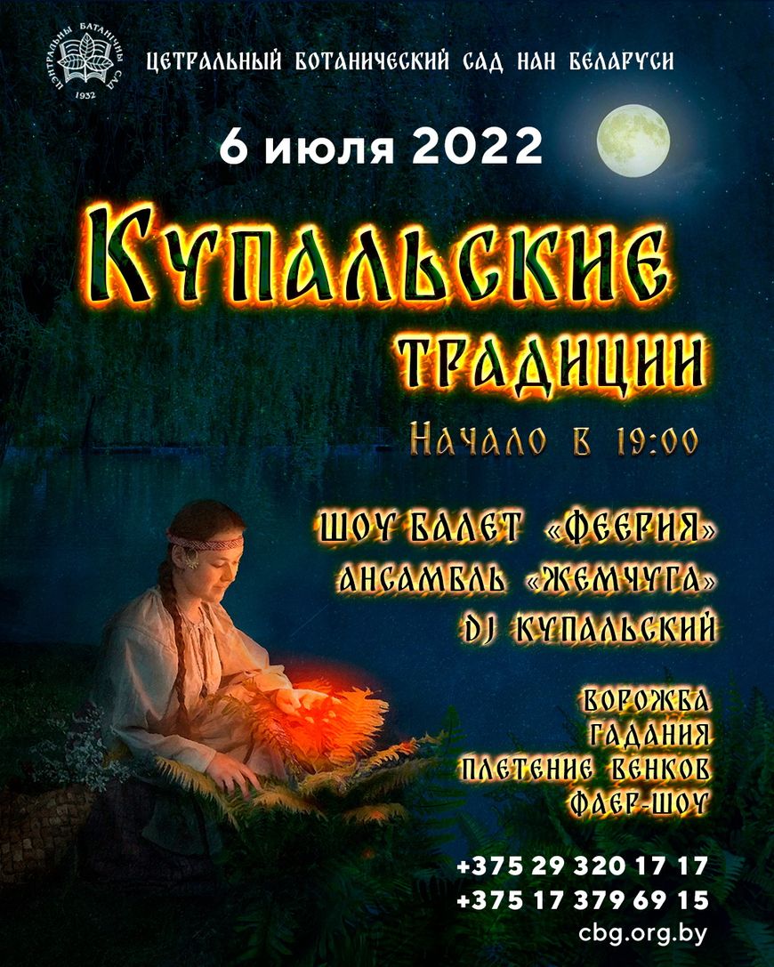 6 июля 2022 приглашаем погрузиться в магию купальского вечера. "Купальские традиции" с таинственными старинными обрядами, где предсказания от астролога соседствуют с созданием карты желаний, создадут празднику особую мистическую атмосферу.