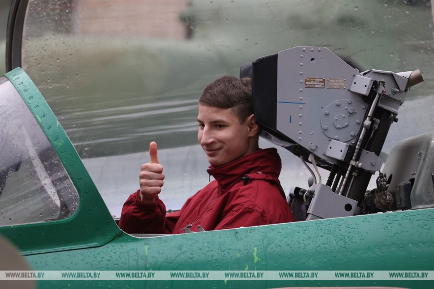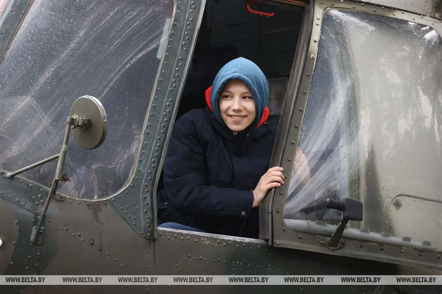 На экскурсию приехали школьники, отличившиеся в учебе, спорте или творчестве. Среди них и Саша Алексейчик, которая занимается вышиванием и бисероплетением, поет и танцует. "Про экскурсию мы узнали только вчера. Все держали в секрете, но я осталась под большим впечатлением. Мне понравились танки и самолеты", - рассказала Саша Алексейчик.