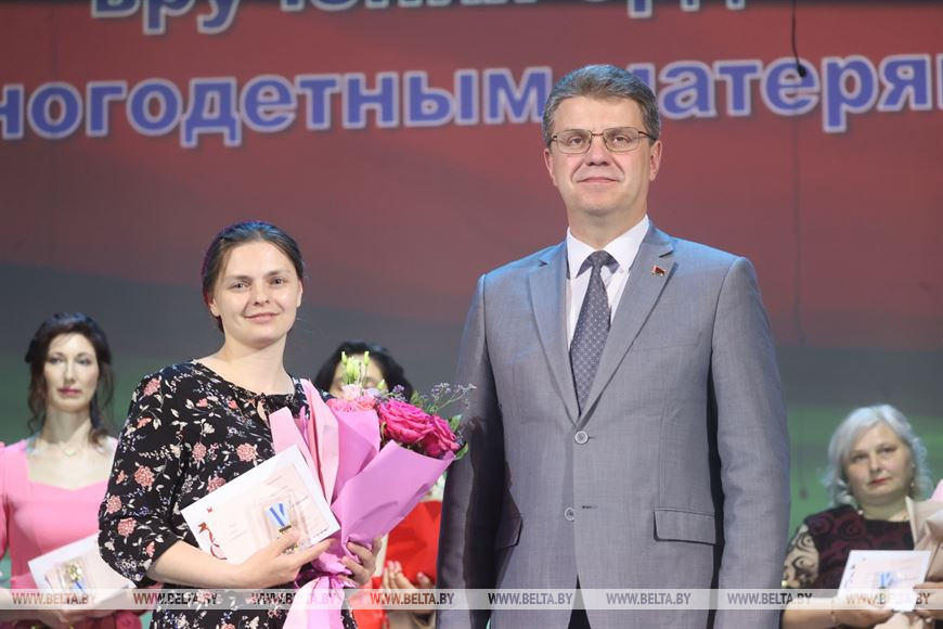 15 мая, Минск /Корр. БЕЛТА/. В День семьи председатель Мингорисполкома Владимир Кухарев от имени Президента Беларуси в торжественной обстановке Минского городского дворца культуры вручил орден Матери 19 минчанкам, сообщает корреспондент БЕЛТА.