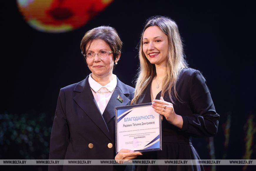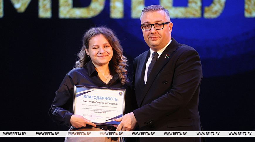 Победитель в номинации "SuperПРОФИ в сфере спорта и туризма" Ксения Брыкун работает ведущим специалистом по рекламной коммуникации многопрофильного культурно-спортивного комплекса "Минск-Арена". Она поблагодарила организаторов конкурса за возможность продвинуться молодым специалистам и заявить о себе, своей работе и учреждении.