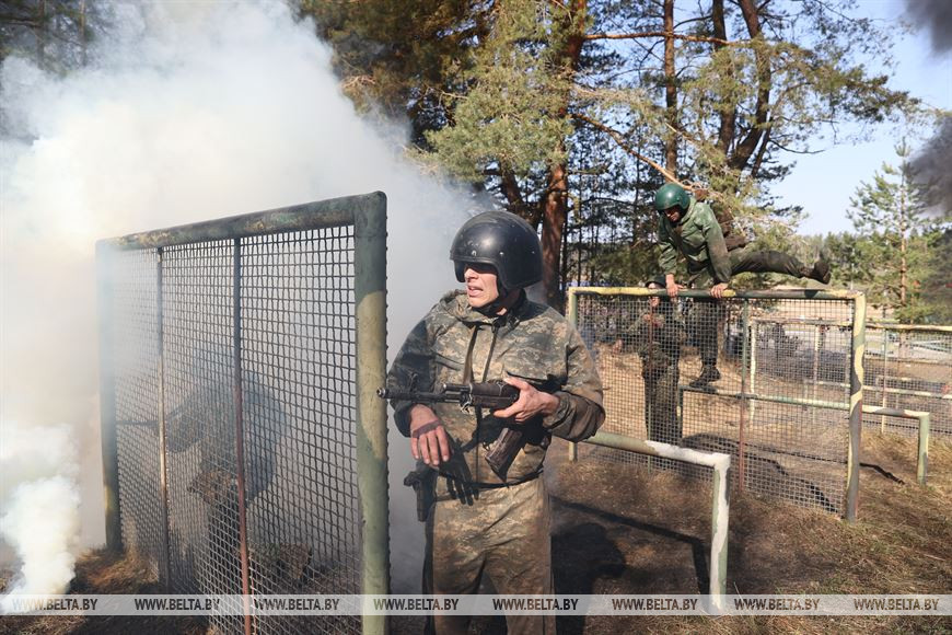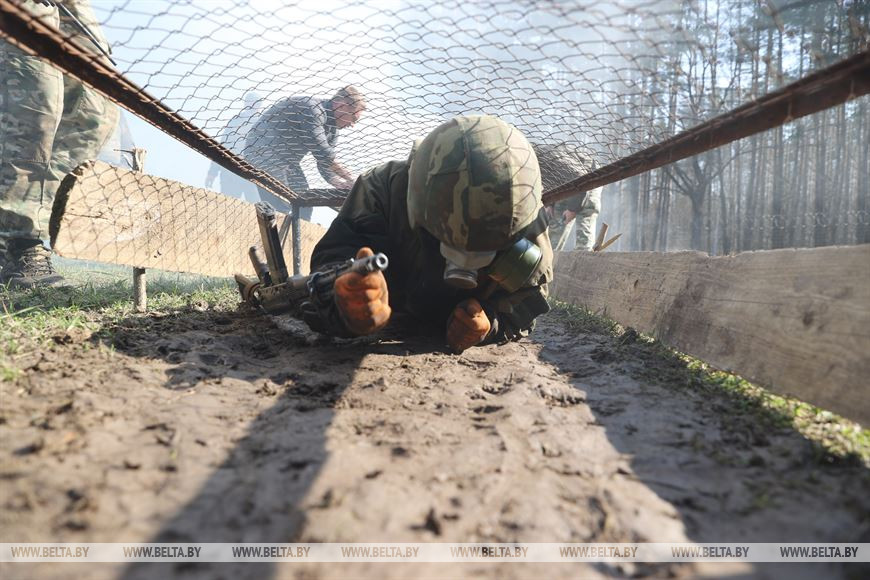 Учебный центр внутренних войск МВД в этот день встречал клубами густого дыма и оглушительной стрельбой из автомата Калашникова. Казалось бы, обстановка для военного полигона привычная. Но для нескольких десятков бойцов спецназа внутренних войск МВД сегодняшний день без преувеличения особенный. Самые выносливые, крепкие и мужественные военнослужащие должны были пройти квалификационные испытания на право ношения крапового берета. Право ношения форменного головного убора спецназа внутренних войск буквально нужно заслужить, поэтому ребят ожидали не стандартные и уже привычные за время воинской службы испытания. В учебном центре были и корреспонденты БЕЛТА, которые узнали, какие испытания предстояло пройти потенциальным "краповикам" и насколько успешно они с ними справились.