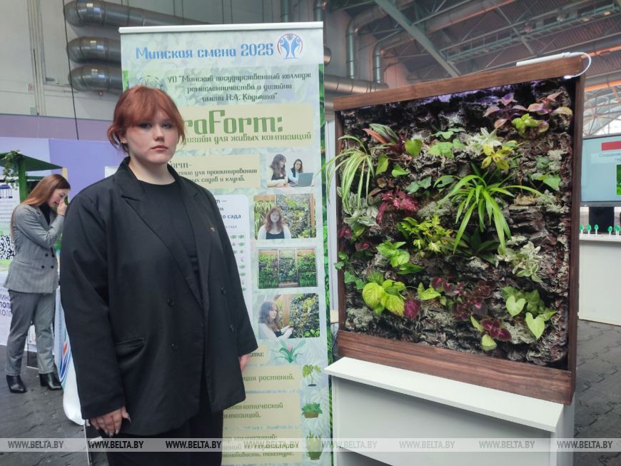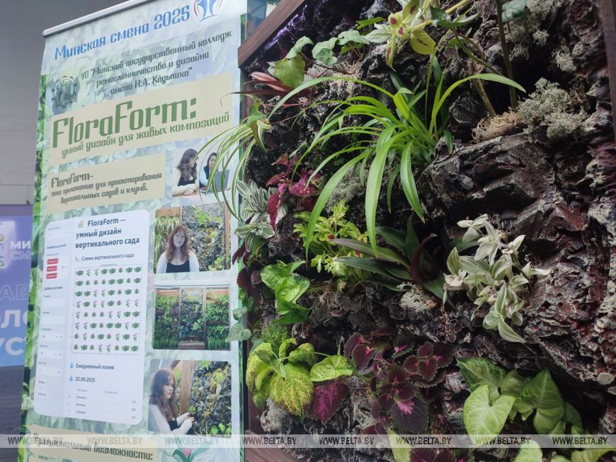 Своей живостью и зеленью притягивал посетителей проект второкурсницы Минского государственного колледжа ремесленничества и дизайна имени Н. А. Кедышко Дарьи Барковской "FloraForum". Девушка предложила свой формат вертикального сада, который будет создаваться на основе определенных критериев разработанной программой. "Он нужен для озеленения нашего прекрасного города. Его можно использовать и для озеленения комнаты, дачи, сада. Проект представляет собой программу, где регулируется все - от количества растений до их цвета, размера. Программа подбирает максимально хорошее сочетание цветов, их расположение, систему полива, свет и так далее", - рассказала девушка.