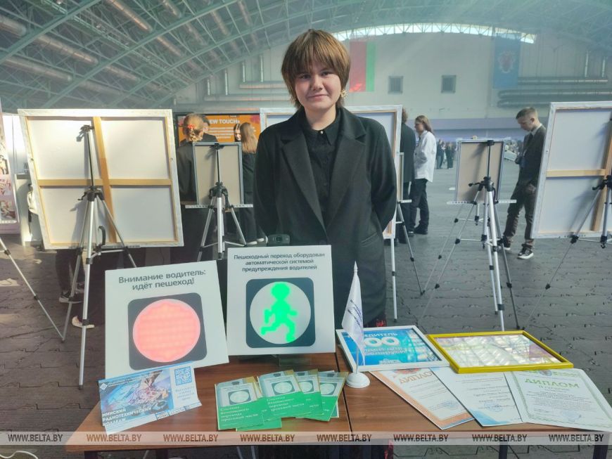 Сегодня очень актуальна тема дорожной безопасности пешеходов. Многие ребята не обошли ее стороной. Среди них учащаяся 3-го курса Минского радиотехнического колледжа Мария Буракова. "Мой проект называется "Система безопасного перехода проезжей части" и представляет собой комплекс технических устройств, которые размещаются на пешеходных переходах и способствуют снижению риска возникновения ДТП с участием пешеходов. Суть в том, чтобы оснастить пешеходные переходы камерой и одноплатным компьютером. Видео с этой камеры поступают на компьютер и там обрабатываются с помощью компьютерного зрения и нейросетей, которые определяют, есть ли человек или даже крупное животное в области пешеходного перехода, - рассказала девушка. - Если такой объект был обнаружен, то для водителей загорается красный свет, а для пешеходов зеленый. При этом между собой светофоры соединены посредством радиосигнала, что позволяет вынести пешеходный переход для водителей на некоторое расстояние, чтобы даже на больших скоростях они успевали затормозить. То есть это модернизация существующих решений пешеходного перехода с кнопкой, но предусматривающая возможность появления крупных животных на пешеходном переходе".