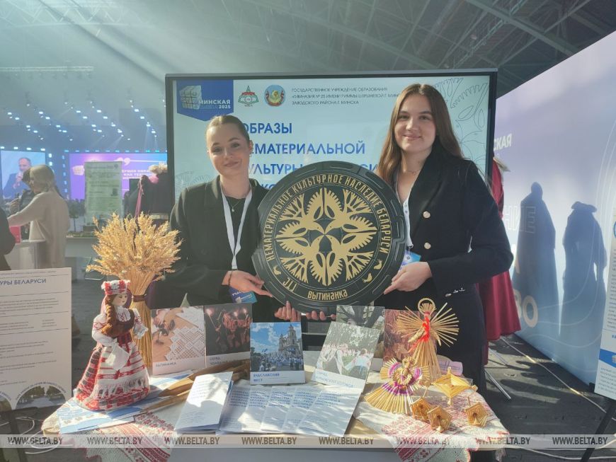 Интересным многим показался совместный проект учителя русского языка и литературы Ксении Бараули и учителя искусства Яны Коноплевой, которые представляют гимназию №25 Минска. Девушки озаботились сохранностью объектов нематериального культурного наследия Беларуси. "Это обряд "Колядные цари", Будславский фест в честь почитания иконы Матери Божьей Будцовской, "Юрьевский хоровод", культура лесного борничества и соломоплетение. Ну и самый молодой, добавленный в 2024 году, - вытинанка. Цель нашего проекта - объединить и визуально обозначить все эти шесть нематериальных культурных ценностей Беларуси в материальных конкретных вещах", - пояснила Ксения Барауля."Мы выбрали необычную форму. Это - люк для канализационных колодцев. На нем будет отображена информация о каждом объекте нематериальных ценностей. Организуется конкурс, где молодежь предложит свои варианты. А для реализации мы предлагаем парки нашего города. Рядом с люками разместятся баннеры с информацией о проекте, о самой нематериальной культуре, об авторе", - добавила Яна Коноплева.