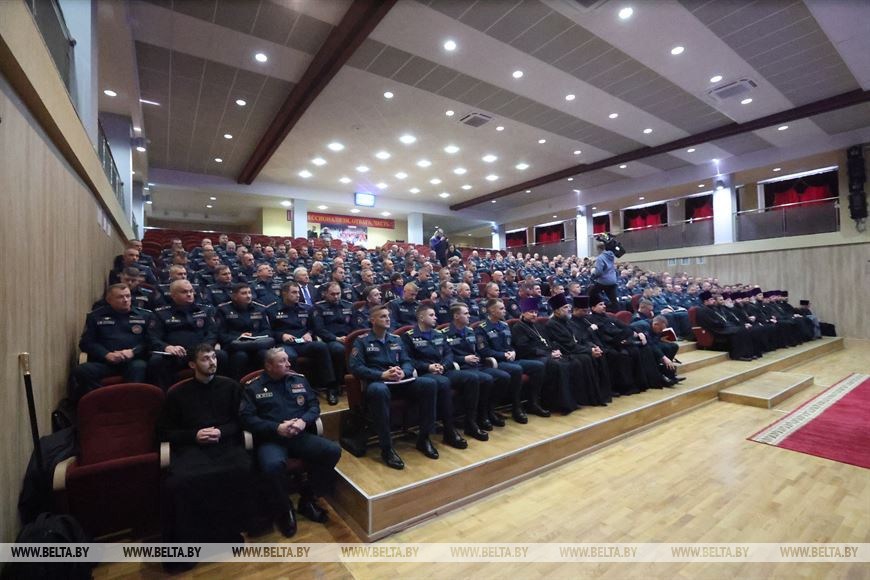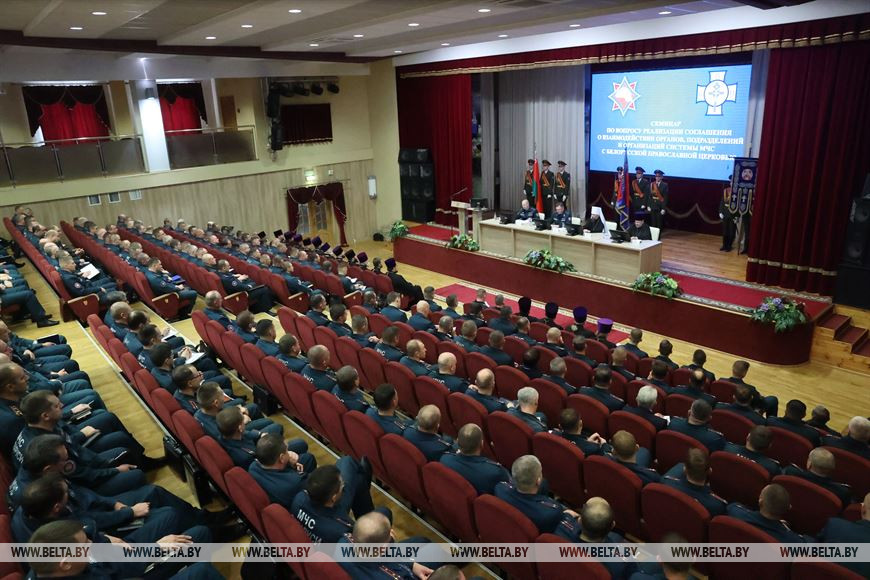 Участие в мероприятии приняли министр по чрезвычайным ситуациям Вадим Синявский и Митрополит Минский и Заславский, Патриарший Экзарх всея Беларуси Вениамин. Участники семинара обсудили итоги реализации соглашения между МЧС и Белорусской православной церковью, план мероприятий по развитию дальнейшего взаимодействия на 2024 год, а также важность поддержания духовно-нравственной составляющей и ее воплощении в деятельности белорусских спасателей.-0-