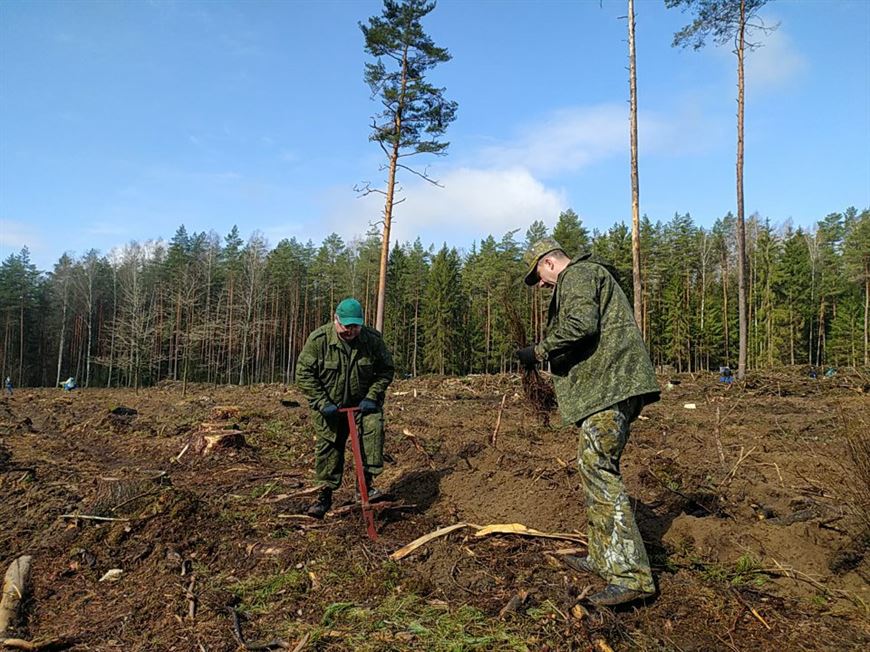 Около 100 представителей контрольного ведомства и органов финансовых расследований вместе с председателем Комитета госконтроля Василием Герасимовым высадили саженцы сосны и березы на площади в несколько гектаров на территории Окинчицкого лесничества ГЛХУ "Столбцовский лесхоз".