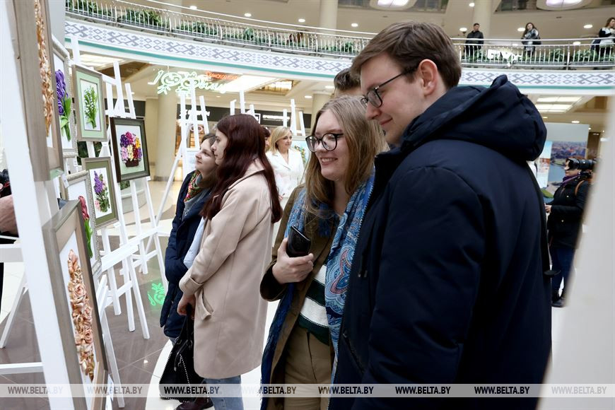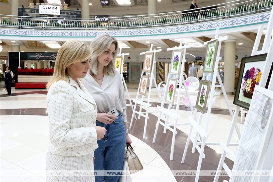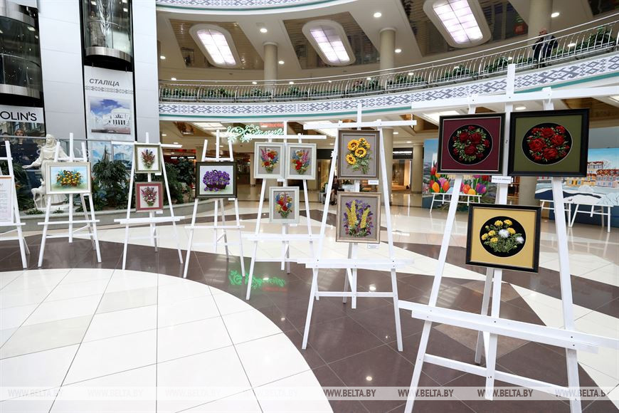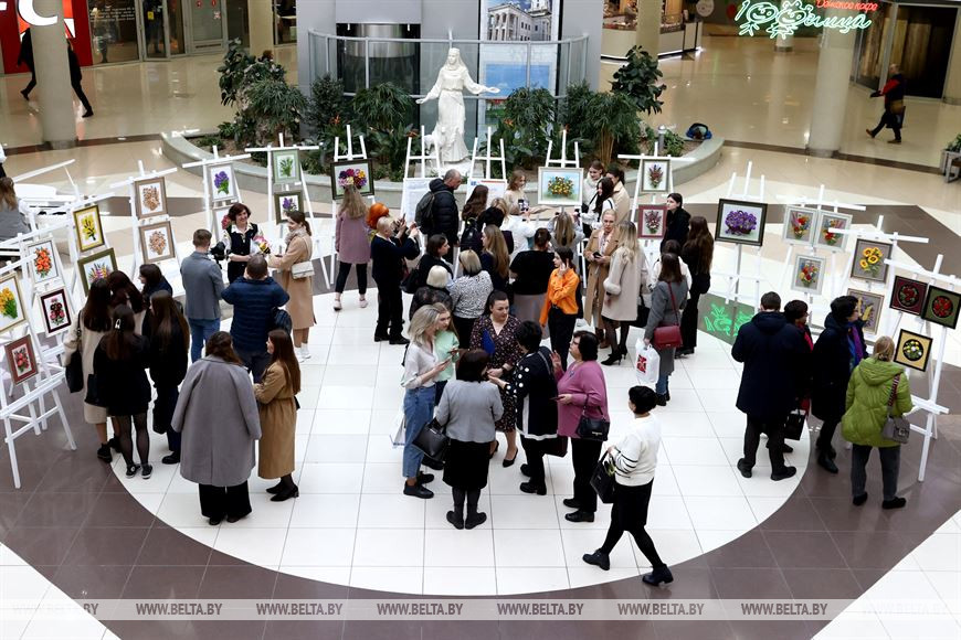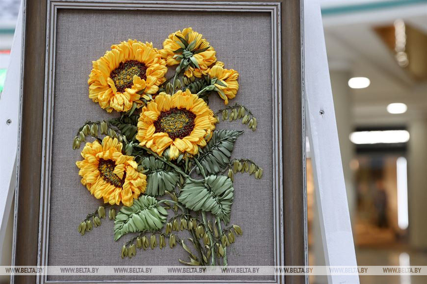 Мастерица вышивки лентами Марина Чистякова представила свои работы на выставке "Ее рук дело". Мероприятие, стартовавшее осенью 2022 года, проводится под эгидой Белорусского союза женщин и проходит в столичном торговом центре "Столица".