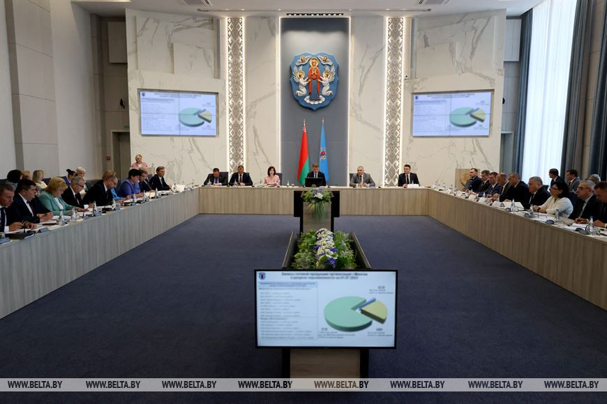 Сегодня с участием председателя Совета Республики Натальи Кочановой проходит заседание Мингорисполкома. Тема обсуждения - об итогах социально-экономического развития за первое полугодие 2023 года.
