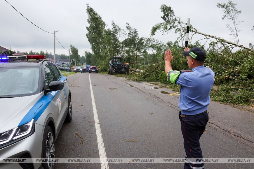 "Спасатели продолжают ликвидировать последствия прохождения грозового фронта. На месте работает штаб ликвидации ЧС. Координация всех аварийных служб проводится Минской районной комиссией по чрезвычайным ситуациям. Подразделения МЧС продолжают распиливать упавшие деревья, обеспечивая возможность аварийным бригадам восстанавливать электроснабжение", - рассказали в главном управлении МЧС Минского облисполкома.В данный момент задействовано более 70 работников Минского районного отдела по ЧС, РОСН "ЗУБР" и пожарного аварийно-спасательного отряда Минского областного управления МЧС, а также 10 единиц техники спасательного ведомства.