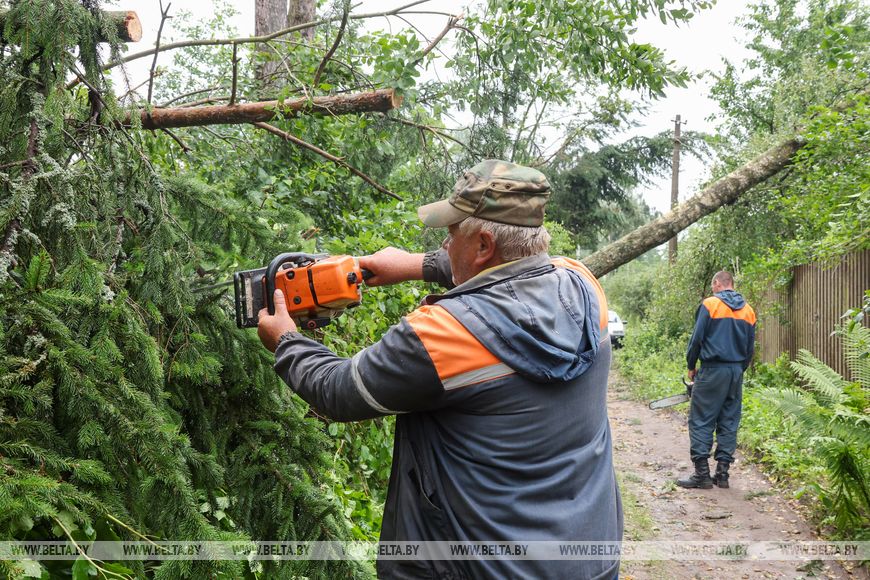 Всего с первых минут реагирования на последствия прохождения грозового фронта в Минском районе задействованы более 320 работников чрезвычайных и аварийных служб и более 40 единиц техники.