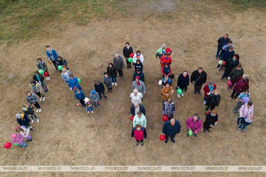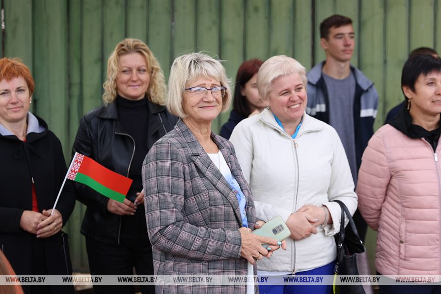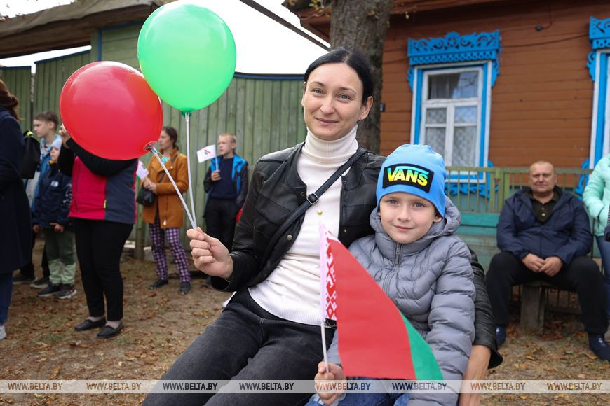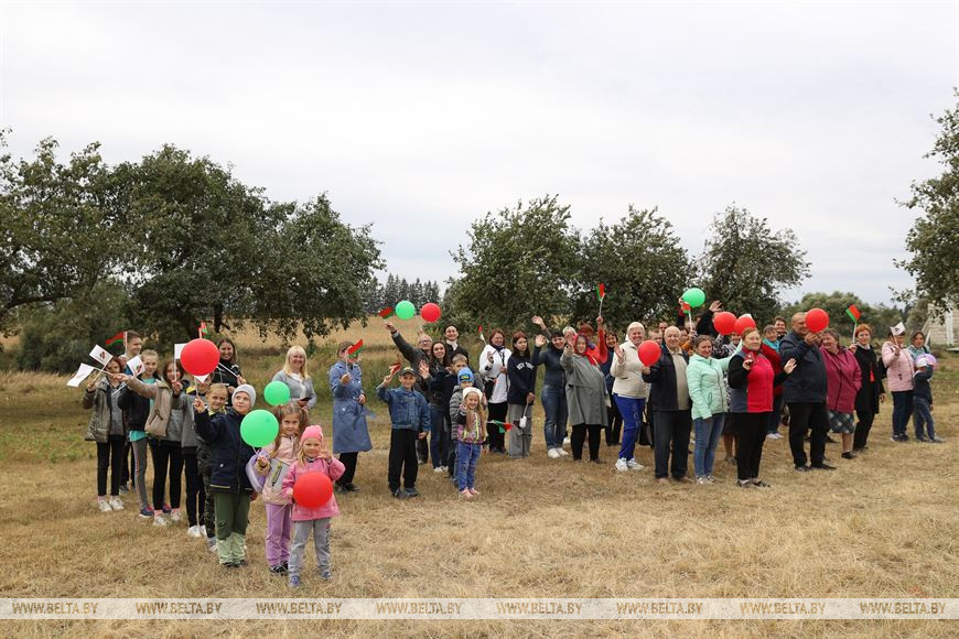 Тем временем на площадке собираются местные жители, гости из Чечерска и окрестных деревень. Подъезжают и артисты - народный вокальный ансамбль "Вербица" Чечерского районного Дома культуры под руководством Галины Дорофеевой. "Основные мероприятия - автопробег "За Беларусь!" и высадка деревьев - пройдут 17 сентября", - раскрывает секреты Сергей Малюков. Участники автопробега высадят у поселка 17 вечнозеленых туй - символ памяти о великих событиях осени 1939 года, навсегда покончивших с разделением Беларуси на Западную и Восточную.