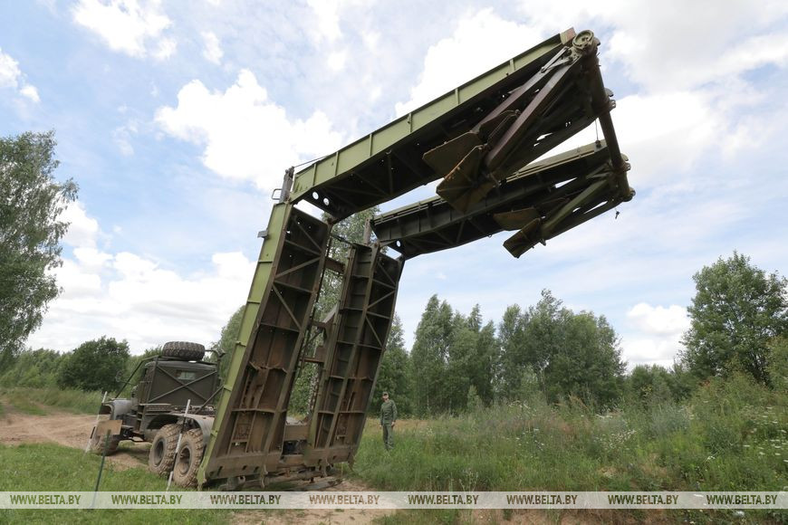 "К преграде - реке, яме или противотанковому рву - подъезжает специальная машина, на которой закреплена часть механизированного моста. После этого его медленно начинают опускать, расчет следит, чтобы конструкция стала на свое место. Два человека открывают опоры, смотрят, чтобы они были нужной длины и раскрылись вовремя, ведь после нас здесь может проходить тяжелая техника, - рассказал о процессе командир расчета тяжелого механизированного моста ТММ-3М Виталий Сомов. - Действия расчета должны быть слаженными и четкими. Как установлена первая 12-метровая часть, машина отъезжает. При необходимости подъезжает следующая и повторяет процесс. Части моста между собой закрепляются, чтобы не было форс-мажорных обстоятельств".
